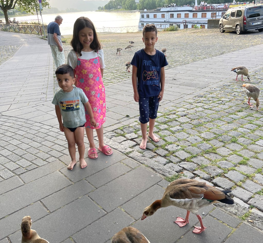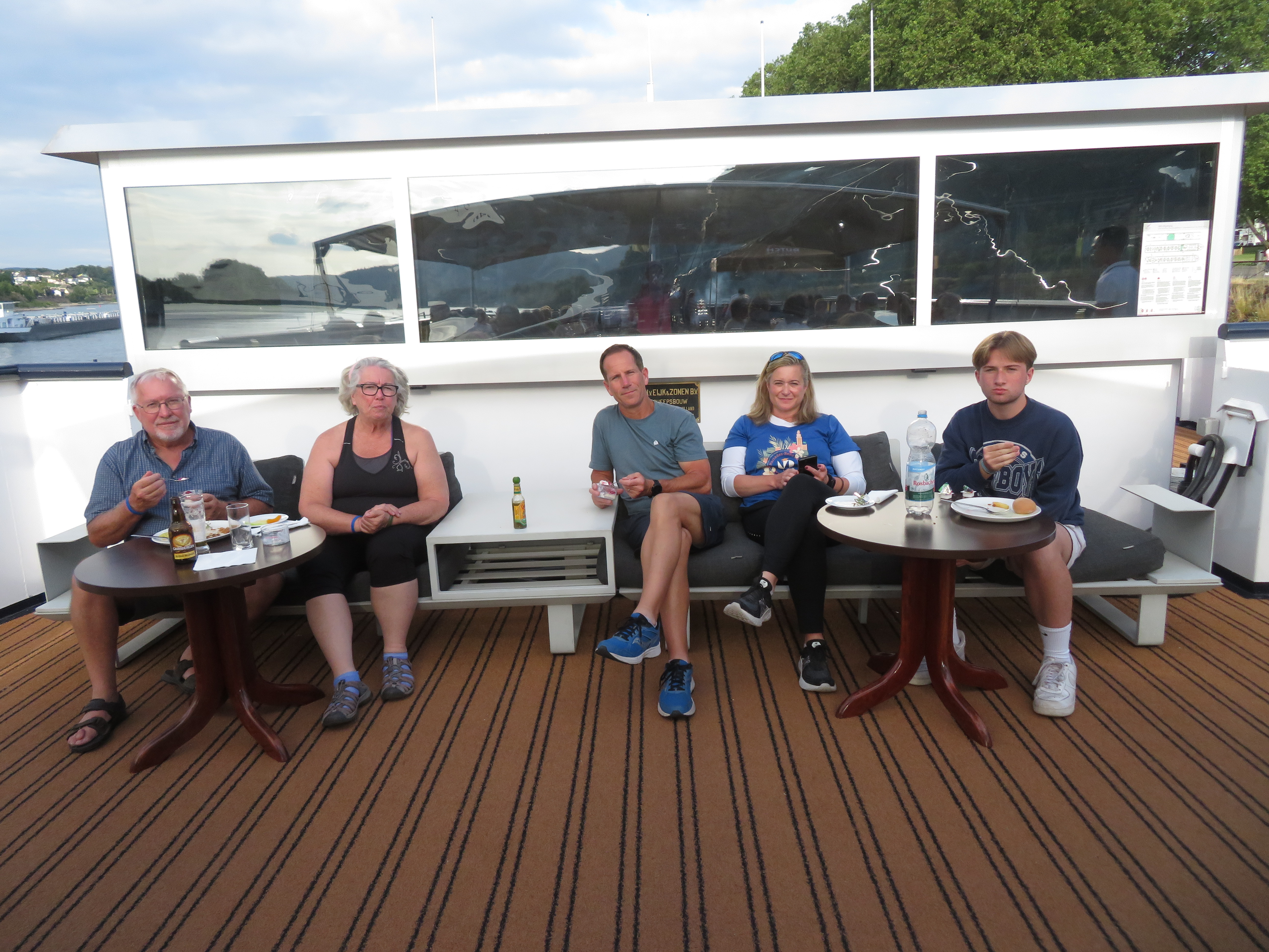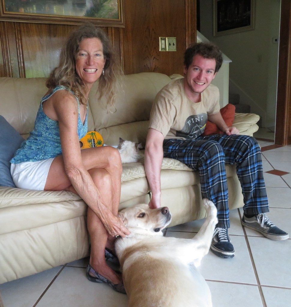 Up at 5:00 am-leave MAINGAU HOTEL at 6:00 am-walk, pulling luggage, through empty streets to train station. Take 7:45 train straight to airport-walk long ways to our gate-arrive at 9:20. Glad we started early, Frankfurt Airport is much larger than Austin’s. Plane leaves around 10 am-arrive in Austin at 2:30pm. (9:30 pm in Germany) HARLEY & LIBBY greet us at the door. JILL & her son GUS are at a Willie Nelson concert. Glad to be home-start washing clothes & go out to eat. Try to go to bed at 11-fire works going off. Been up for almost 24 hrs. Next morning, up working in yard. Get dizzy, head starts spinning-can’t stop until I fall into some concrete blocks. Armand takes me to emergency room. Try not to scare JILL & GUS-my face is a mess. Turns out I had my 1st bout of VERTIGO. We are so grateful to JILL for taking such wonderful care of HARLEY, LIBBY & THE FISH. It was a pleasure to meet her son GUS-who got to visit for a week. They took an opportunity to visit Austin- Jill loves to swim & ride bikes. Armand took them to the airport on Wed to fly back home to Florida. JILL & SON GUS-LIBBY BETWEEN THEM & HARLEY SOAKING UP ATTENTION THANK YOU SO MUCH. LOVE, KAREN & ARMAND