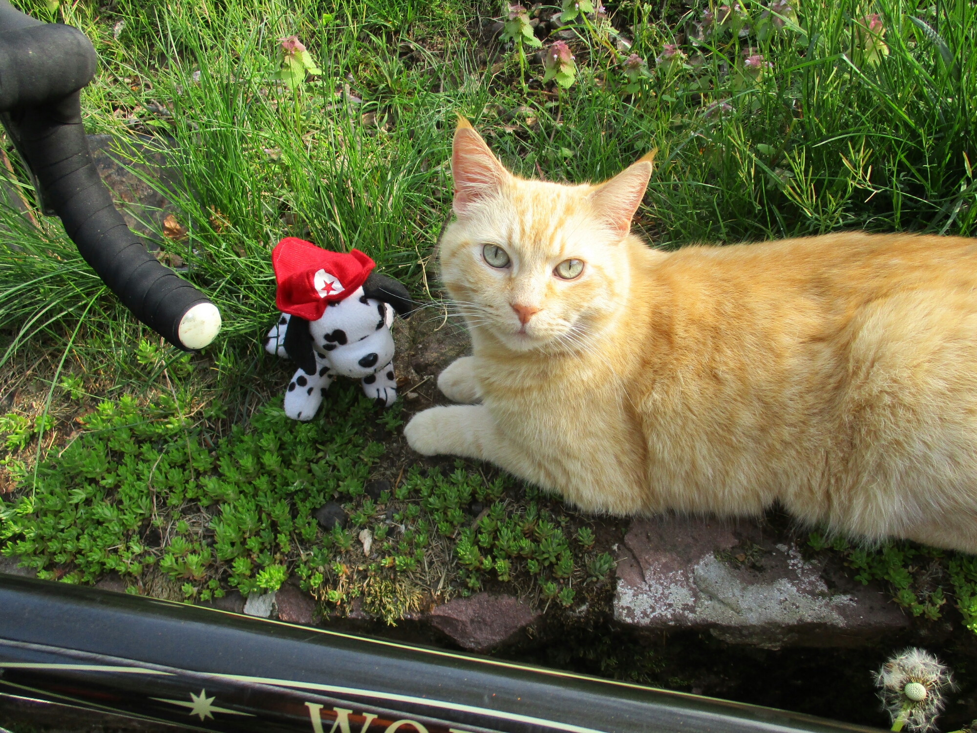 Out of water-lady gives us 2 bottles-cat comes over to offer sympathy-Sparky was happy to have new friend