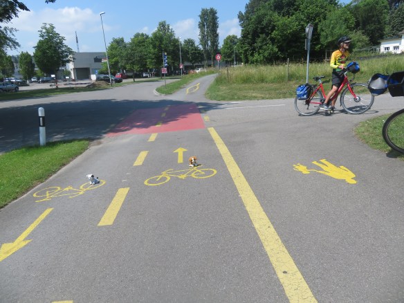 6/10 bike signs all along trails, church in Lachen-8:30 Sun-no one there, breakfast, map rap w/Cindy