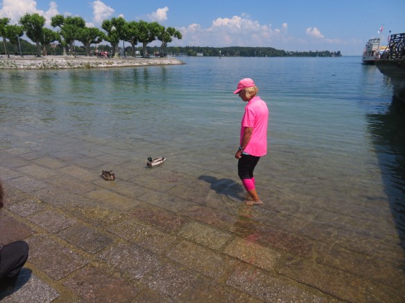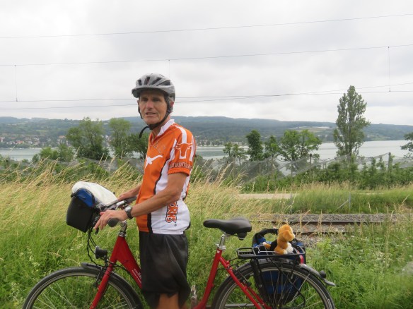 What a nice day. Easy biking on scenic trails to Weesen. See Cindy-going to bike to waterfall & then around lake to hotel. We’re taking 90 min boat ride pass waterfalls to Hotel Seehof. Boat is full-makes 5 stops along way. Lots of people-by water-enjoying beautiful day. Have nice room-windows open to lake-no screens on any windows in Europe. Need rest after biking 15 m & boat ride. Take walk-see Jean sitting on bench-didn’t take boat ride either. Listens to books on tape as she bikes. Too hot-83-go back inside watch finals of French Open-Cindy joins us. Eat at hotel rest.-$4.50 water, $9.50 for small salad, $15 spaghetti. Have ham sandwich (3rd of the day) no cheese-terrible bread $7. Take another walk-peaceful-tourists are gone. I think the 4 of us are the only ones on this bike tour. Armand is asleep.