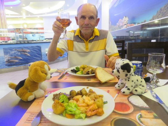 Driver (dressed in suit) in fancy Mercedes picks us up at 10. Takes us over longer, scenic mt route-answering quest in perfect English. Very small, ecletic hotel-just a few rooms-very nice. Go on hike to fort-no charge-few people-view of town fantastic. Have drink-starts to drizzle-meet Arturo & Becky from San Diego-offer us a ride. Stop in market-impressed-large grocery store next door. Back to hotel-2:30 bike meeting. Get bikes from new company & tickets for ferry in morning. Walk around town-nice & quiet-very few tourists-eat our best meal @ Wok SETÙBAL. Huge restaurant-don’t understand how they do it- were told most people don’t eat until 9. Watch French Open & Ping Pong.