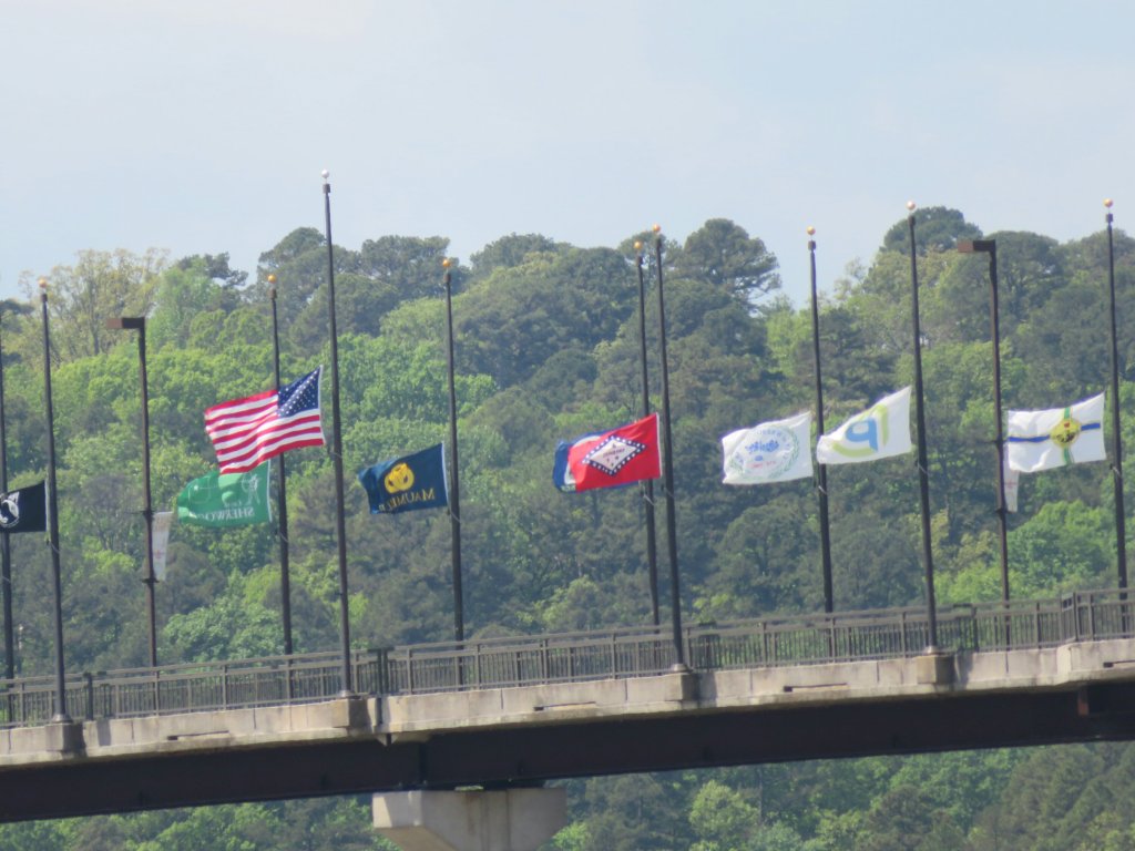 Meet at lodge at 8:30-follow airstream to BIG DAM BRIDGE in LITTLE ROCK. Park & bike around closed rd under consrtuction. Bike 14m over bridge & on bike paths-beautiful-lots of people enjoying the day. Molly’s E-Bike dies-has to push 65 lb bike up bridge. Have LAST meal in airstream-hope we get asked to join them again-even though we made NO contribution. Suppose to arrive in Dallas at 6-had 3 hr traffic delay-arrived at my sister Nancy’s house at 9. Her dog Sugar & cats Trouble, Simba & Scouter were there to greet us. So glad to get there.