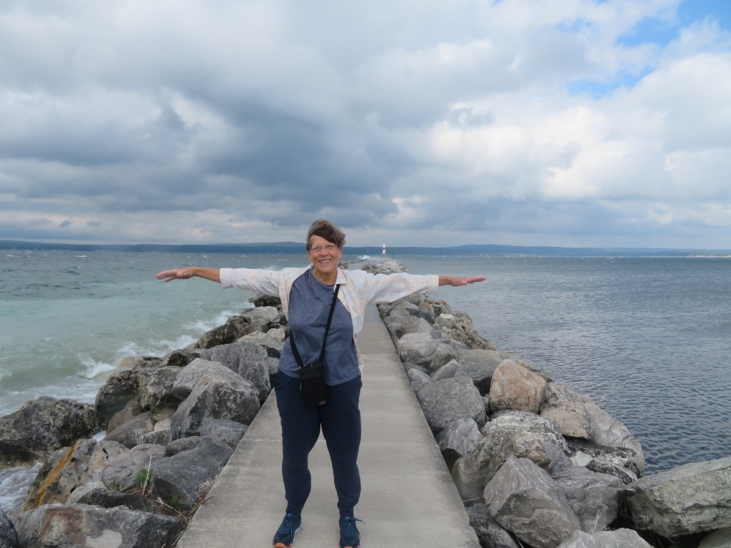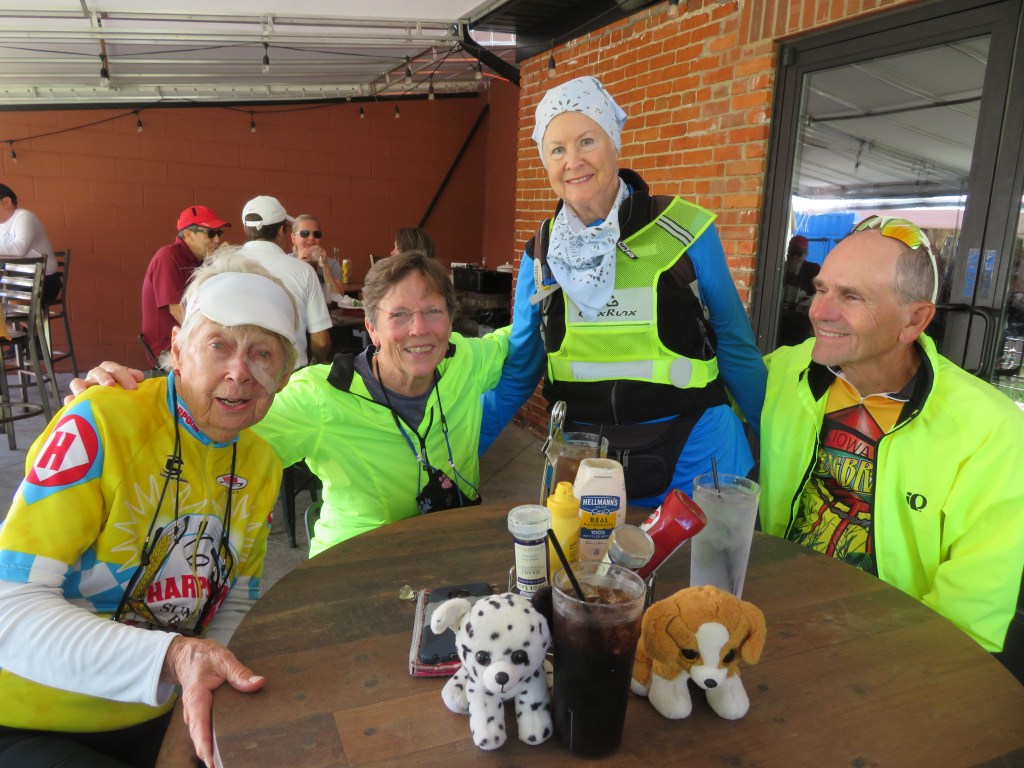 Eat breakfast, show PETOSKEY BIKER BABE REUNION 2021. I’m getting better at putting my pictures together. Donna is leaving because she has to get back & take her grandson to Europe. She is a very special grandmother-when the grandkids turn 10, she takes them any where in the world they want to go. She also hosted one of our reunions in Lake Tahoe at her beautiful house. She called herself the “reluctant biker” in 2002. She is an amazing woman as are all the women that biked across America that year.
