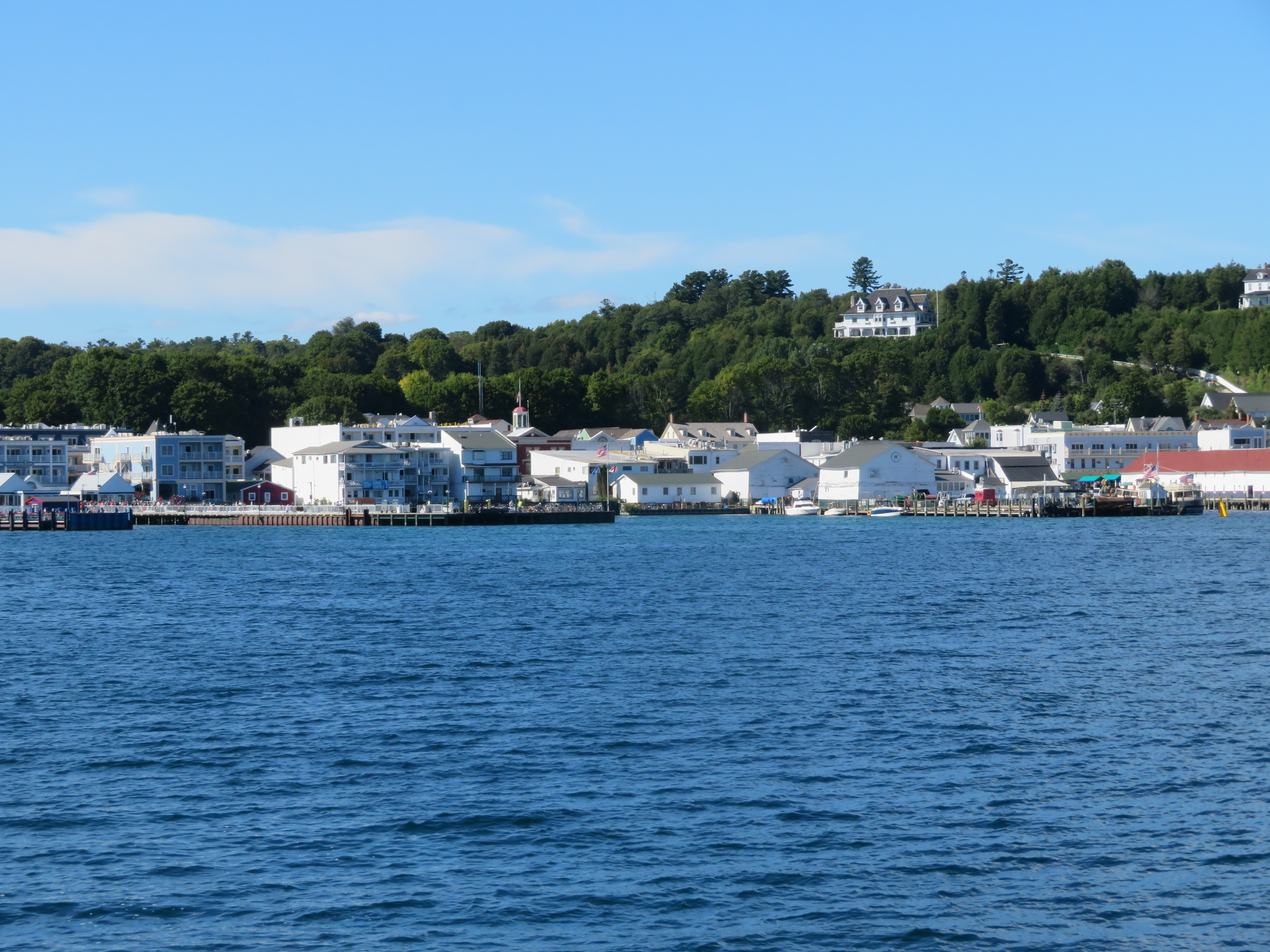 SEPT 13 (MONDAY) ANNE is our driver-after going wrong way (rd under construction was clue) we made it to the ferry. Did I mention-weather is cool & perfect. Island is famous because NO cars allowed. ANNE, LYNN, DONNA & I took horse carriage tour. FRAN (who had already done this before) geocashed ??? She looks for hidden objects. We had dinner w/FRAN’S daughter DAPHNE who is a geologist & DAVID who we met on the trail. They are in a huge RV, pulling car, bikes & motorcycle. I showed video of BIKER reunion in ATLANTA, hosted by LYNN in 2020. In 2002-goal was to get in 1st: Now in 2021