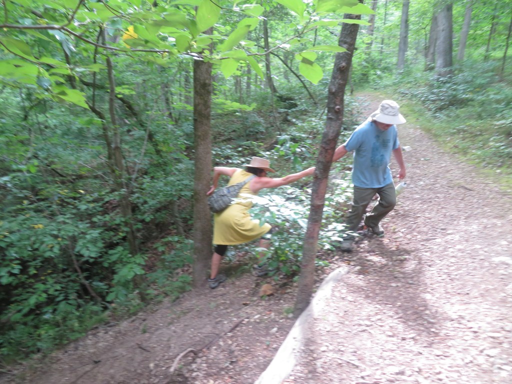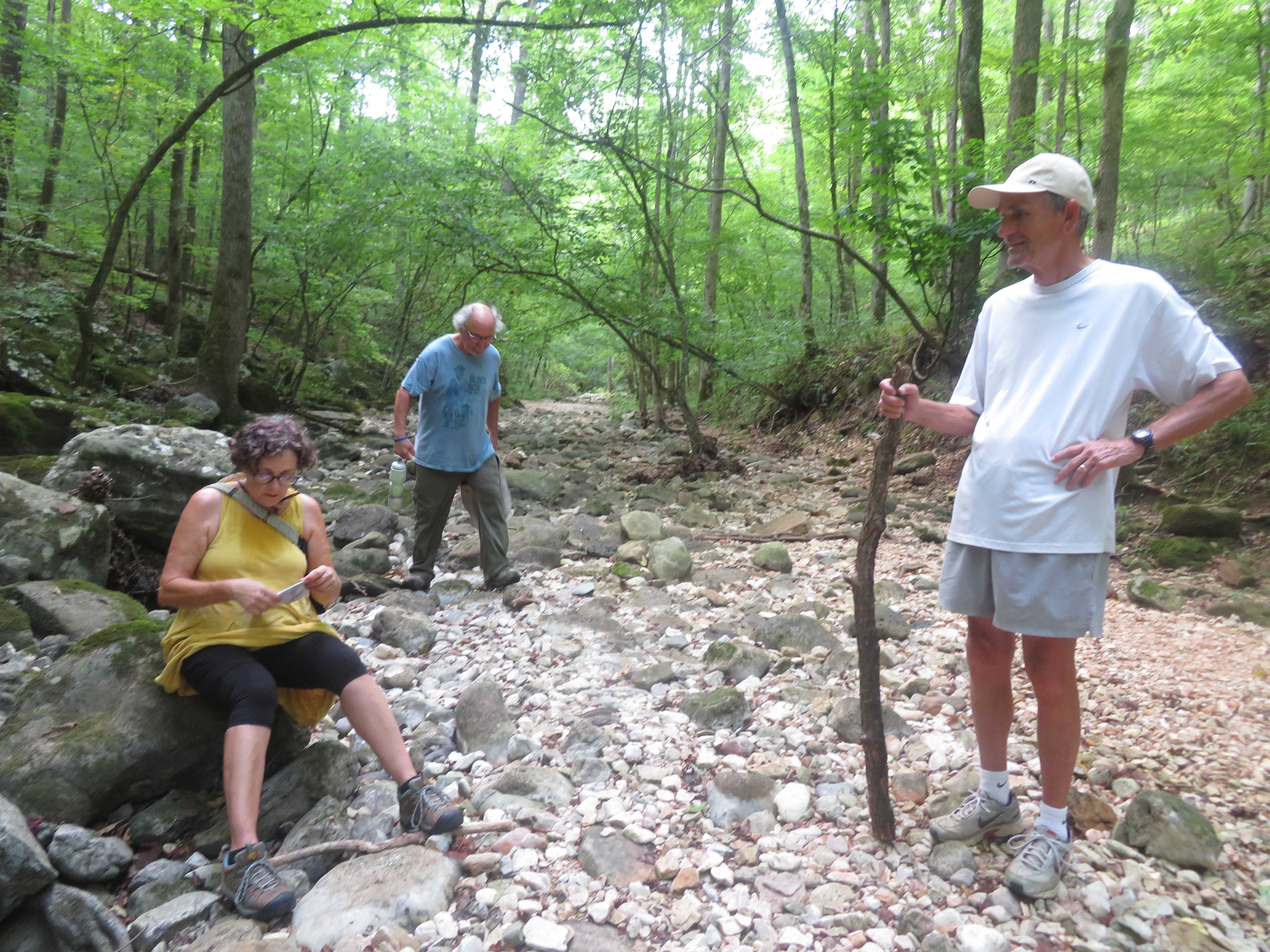 GOING TO HIKE TO INDIAN ROCK HOUSE-VERY STRENUOUS-DECIDE TO NOT HIKE 6/10 M TO HOUSE-TURN AROUND-MEET KAREN & FAMILY NEXT DOOR W/ARTHUR-ASK THEM TO TAKE PICTURES-BETTER THAN US HIKING THERE. ATE LUNCH AT AIR STREAM-WENT TO CABIN FOR NAP-MEET DULCIE & CRAIG (FRIENDS OF M&W FROM LA) FOR DINNER.