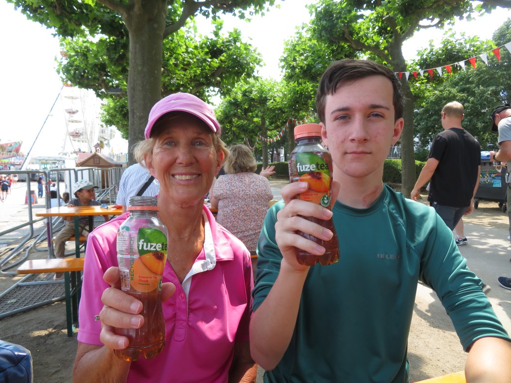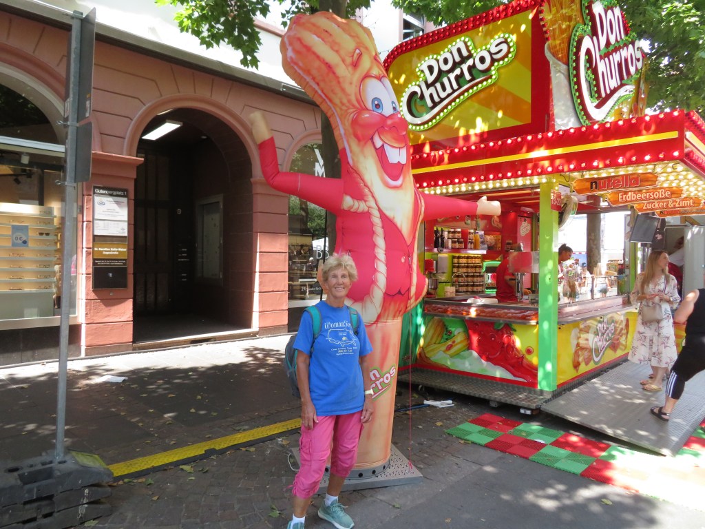 Breakfast & meeting-the 4 of us are the only ones who attend. Not sure it helps us that much. K & A left before A, J, P & P. 1st day that we never saw each other. Cold to start-60 degrees with slight head wind. Do not stop today except to take pictures of goats, ducks & chickens in the same enclosure. A little bit of everything today-shady bike paths, industrialized areas, gravel, river, town roads with traffic. Stopped 2 times to ask for help. Last biker takes us to the Rhine. See MS OLYMPIA around 12 getting close to big bridge where it’s going to dock. We stop for lunch-a candy bar and water. Get to boat at 12:30-take nap. Meet John and Amy for snacks at 4. They had a little confusion keeping their group together, but we were all successful in finding the boat and completing our adventure. We biked a total of 130 miles.